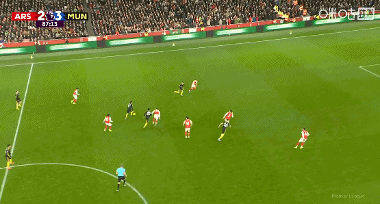 第87分钟,曼联反击机会,梅努助攻,替补出场的库尼亚在大禁区弧顶前轰入一记超绝兜射,为曼联3比2完成绝杀!